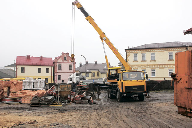 Около здания милиции развернулась стройка. Здесь ведётся строительство административного здания суда, в котором также разместятся нотариальная контора и юридическая консультация.