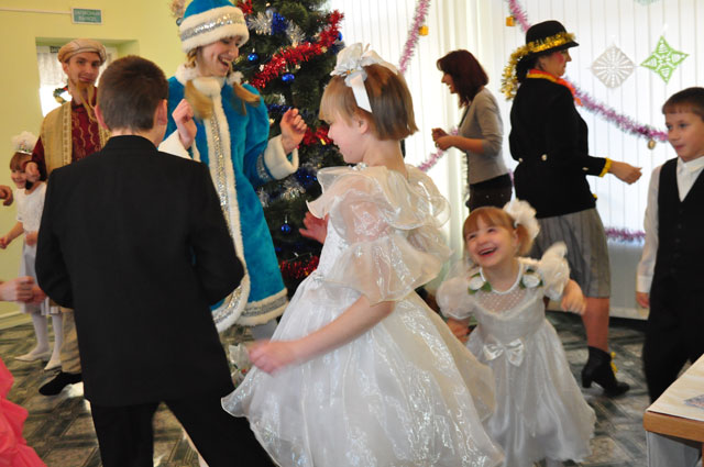 На протяжении полутора часов ребята вместе с актёрами плясали и пели около ёлочки.