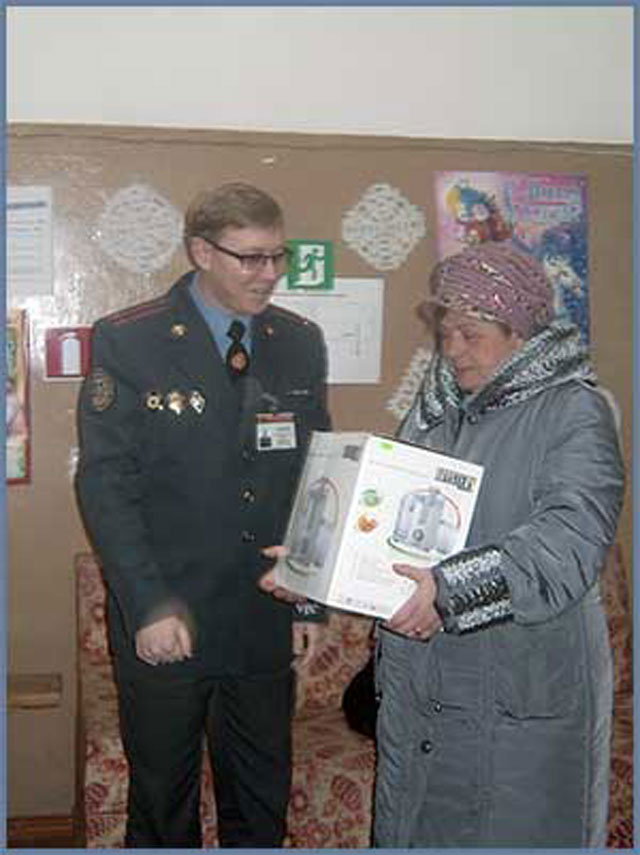 В торжественной обстановке в присутствии сотрудников Слонимского ГУП ЖКХ начальник отдела охраны подполковник милиции Дмитрий Русак со словами благодарности вручил Татьяне Сергеевне ценный подарок.