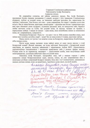 Слонімскія інтэлігенты напісалі адкрыты ліст старшыні райвыканкама