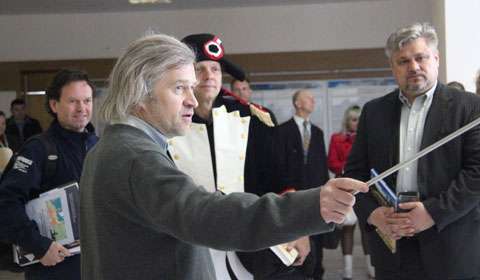 Валерий Калесинский представил свой проект, находящийся пока в эскизе, сморгонцам и гостям из Голландии, которые 25 апреля дали старт в Сморгони благотворительно-исторической акции "В экипаже на конях по пути Наполеона для детей Чернобыля".