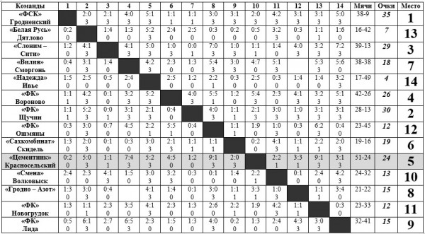 Турнирная таблица Чемпионата области по футболу после первого круга