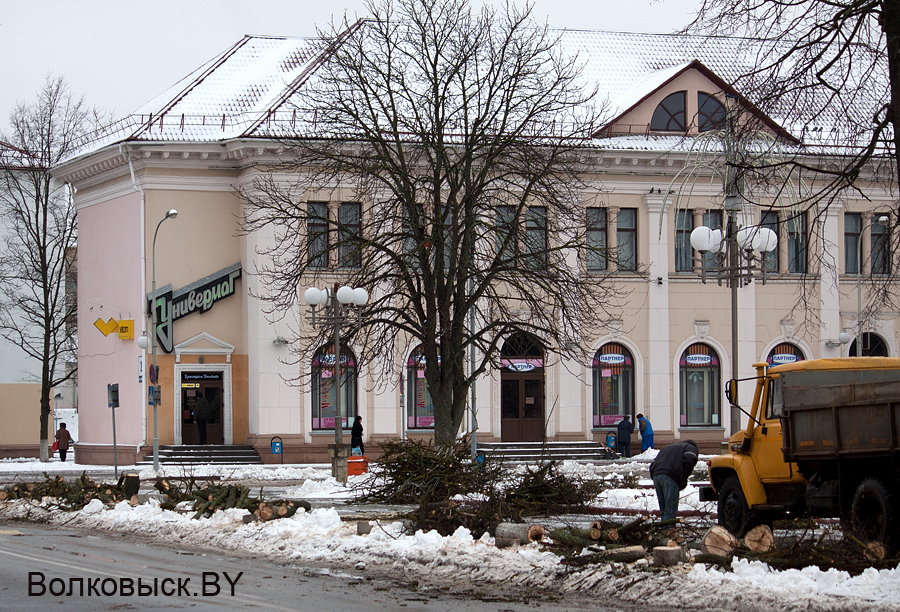 Сегодня на площади Ленина по одноименной улице, возле универмага коммунальщики спилили несколько деревьев.