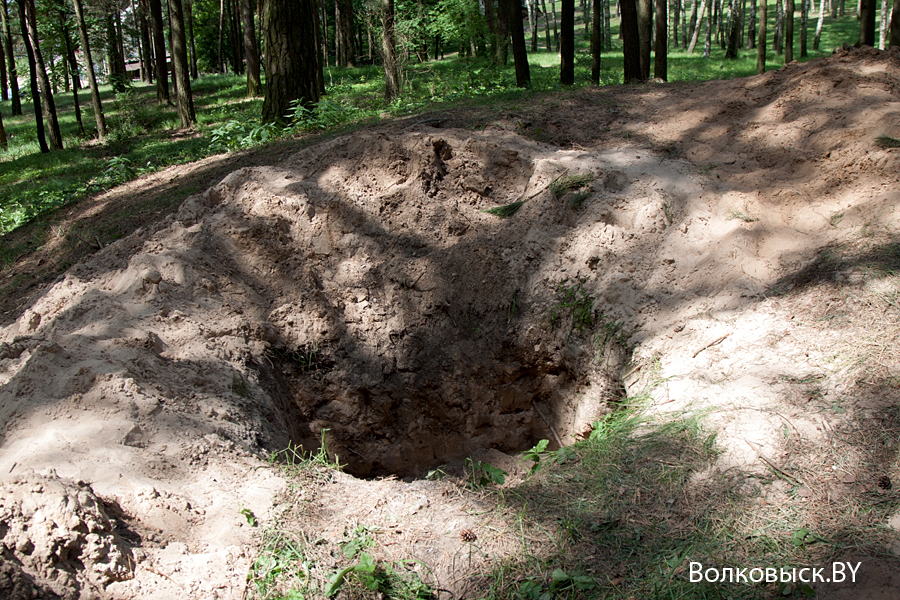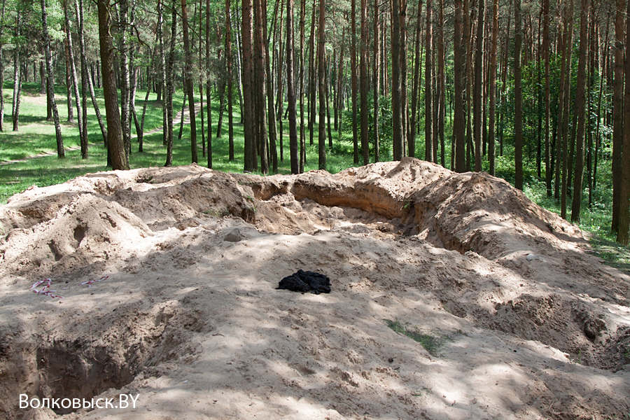 В лесопарковом массиве за улицей Октябрьской города Волковыска работает 52-й отдельный специализированный поисковый батальон, который раскапывает одно из мест массового захоронения.