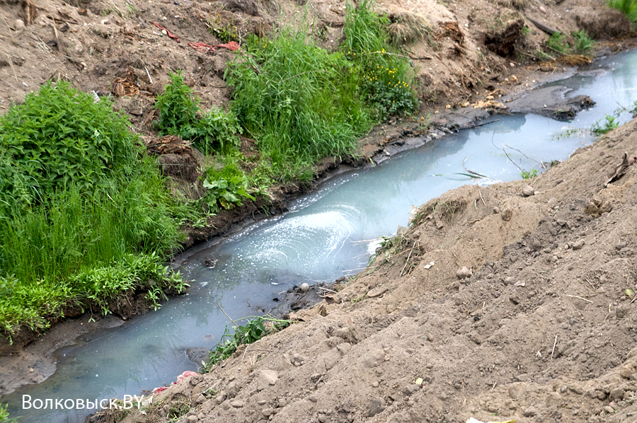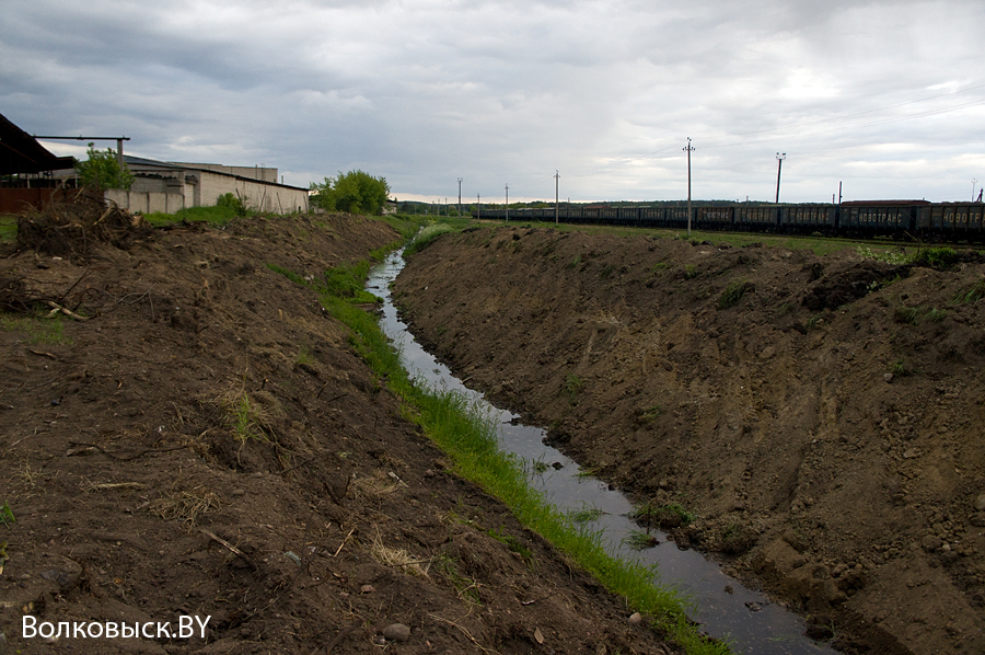 Далее жидкость идет в траншею или ров, тянущийся вдоль станции Волковыск-Центральный.
