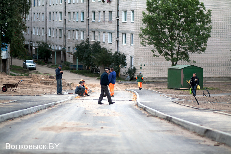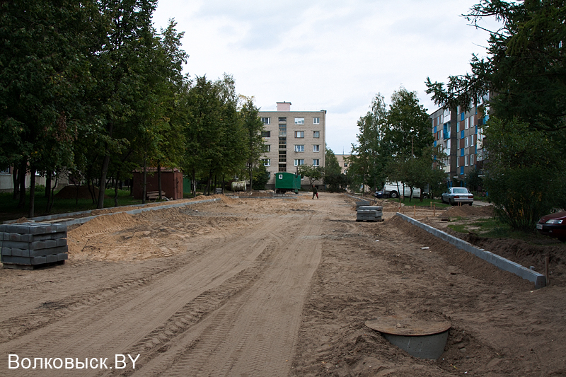 Разбитое покрытие, помнящее не один сломанный женский каблук постепенно меняет свежий асфальт и новый бордюрный камень.