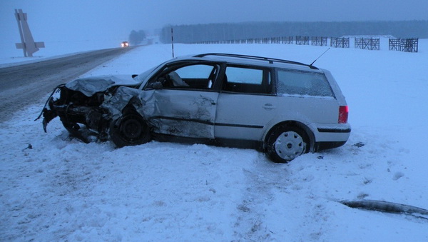 В Волковысском районе 20 февраля на автодороге «Барановичи-Гродно столкнулись «Ауди» и «Фольксваген».