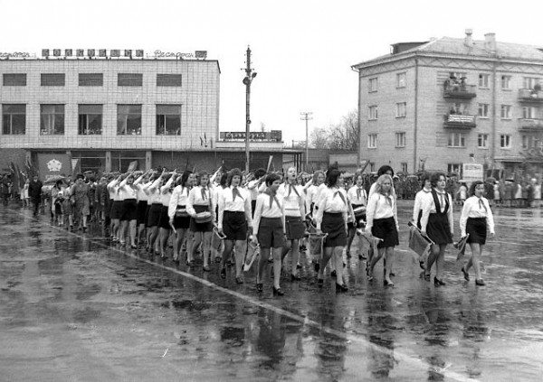 От тех времен остались только выходные дни и снимки. Пользователь социальной сети Одноклассники Борис Перовский опубликовал фотоснимки праздничного шествия Волковысского педучилища из тех времен.