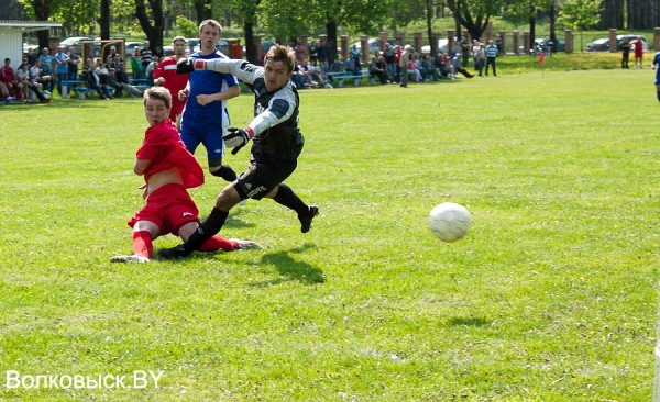 Наши пошли в атаку с первых минут матча. Располагая информацией, что накануне в матче первого тура вороновцы проиграли не самому сильному скидельскому «Сахкомбинату» со счетом 0:2, казалось, соперник будет положен на лопатки. Голы не заставили себя ждать. Уже на 4-й минуте за снос игрока в штрафной площади гостей был назначен пенальти, который реализовал наша «девятка» Бен. Спустя пять минут № 14 Евгений Василевский сделал счет 2:0. Уверовав в легкую победу, наши игроки позволили себе расслабиться, за что и поплатились. На 26-й минуте третий номер гостей, получив мяч в штрафной красносельцев, вышел один на один с вратарем и, пробив в правый угол, сократил разрыв в счете. Через две минуты восьмой номер «коммунальников» замкнул навес в штрафную и сравнял счет. А уже на 34-й минуте игрок гостей ударом со штрафного в левый от вратаря угол вывел свою команду вперед. На перерыв команды ушли при счете 3:2 в пользу гостей.