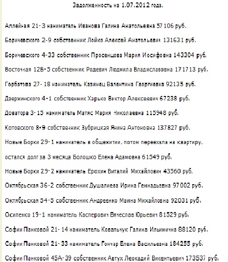 Хотите узнать больше? На сайте ОАО «ЖЭС г. Волковыска» размещены списки граждан по состоянию на 1 июля текущего года, задолжавших организации за