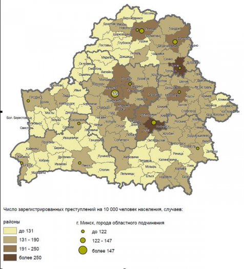 Хотите узнать больше? Портал TUT.by опубликовал карту регионов Беларуси на которые нанесены данные о преступности на 10 000 человек. Волковысский район входит в зону самых