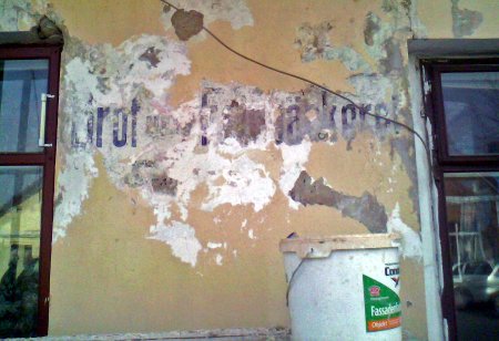 Хотите узнать больше? На улице Жолудева Волковыска проводят ремонт фасада одного из домов, в котором расположено общежитие хлебозавода. 12 апреля под снятой штукатуркой