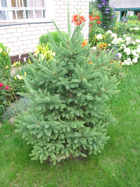 Прыцягвае ўвагу сваім незвычайным колерам ладная ўжо елачка. «Эмігрантка», як пяшчотна заве яе гаспадыня, бо прывезеная з-за мяжы. Колер не зялёны і не блакітны. Прыгожа размешчаныя вакол ствала лапкі… Так і хочацца яе абняць, прылашчыць, што гаспадыня і робіць.