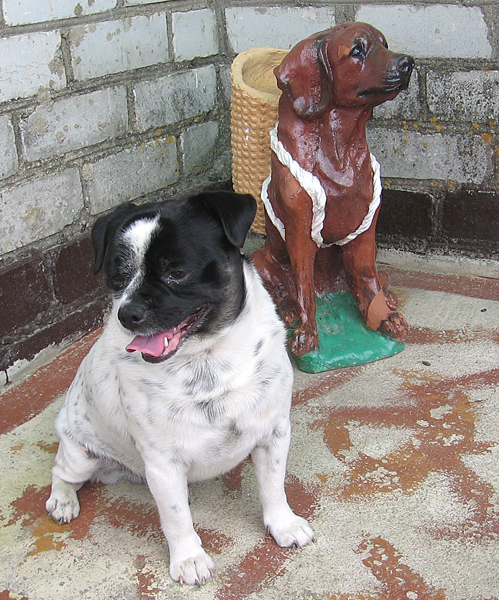 Працягваем сваю нетаропкую міні-вандроўку. Калі пазіраеш на газон з невялікімі кветкавымі кампазіцыямі на ім, узнікае жаданне прылегчы на траўку і проста… пакачацца! Кажу пра гэта ўслых – і высвятляецца, што Алена Юльянаўна… адчувае тое ж! А вось іх сабачка Нікі (любімец, пястун, член сям’і, як зазначыла гаспадыня) нават і не задумваецца над сваімі жаданнямі, а здзяйсняе іх тут жа, з задавальненнем качаючыся па сакавітай траве…