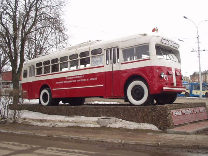 Первый троллейбус в Минске исправно отработал 20 лет. За это время он накатал 1 миллион 83,5 тысячи километров и перевез 9 миллионов пассажиров. В 1972 году заслуженного ветерана решено было не отправлять на переплавку, а водрузить на пьедестал в 1-м троллейбусном депо по ул. Варвашени, 3 (ныне - пр. Машерова), откуда он каждое утро уходил в рейс.