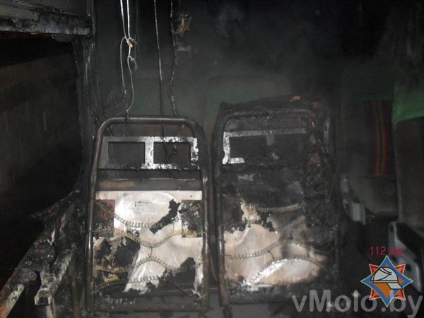 Горение происходило внутри и снаружи транспортного средства. Были повреждены 2 сиденья, 1 кв.м. пластиковой обшивки и закопчен салон.