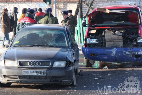 Недалеко возле школы №1 столкнулись между собой Audi A6 и микроавтобус РОЧС.