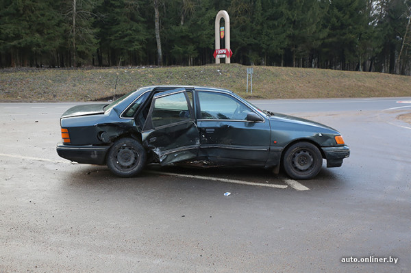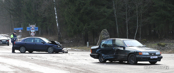 Не поделили между собой дорогу Форд Скорпио и Мицубиси Каризма. Первый автомобиль выезжал со второстепенной дороги на главную, по которой двигался второй.