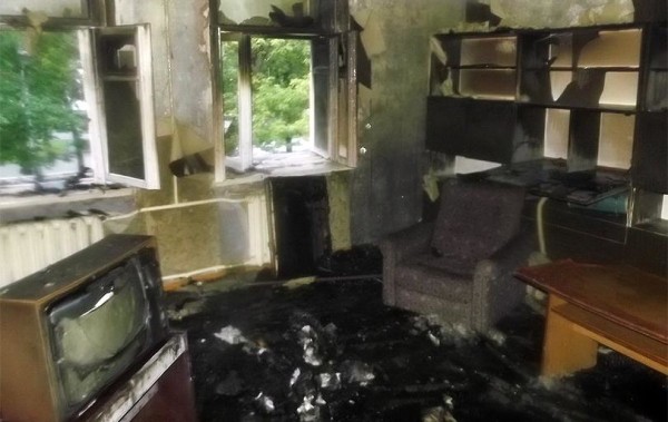Огнем повреждена мебель и закопчены стены.