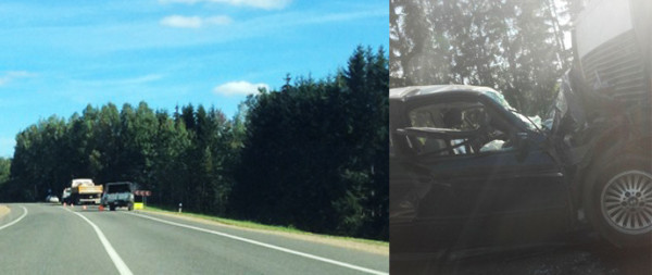 На 53-ем километре указанной трассы, возле д. Красное, что в Молодечненском районе, BMW под управлением пятидесятидевятилетнего минчанина на закруглении дороги выехала на встречку, где произошло столкновение с грузовиком МАЗ.