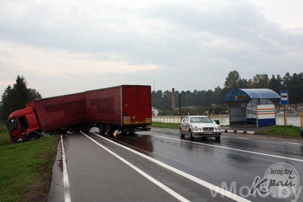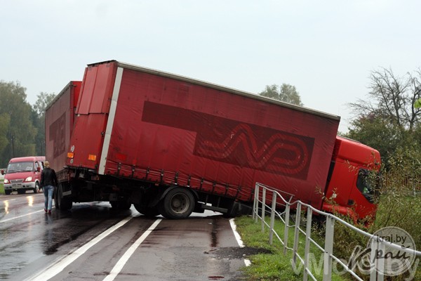 Грузовик «Renault» на трассе Р28 съехал в кювет.