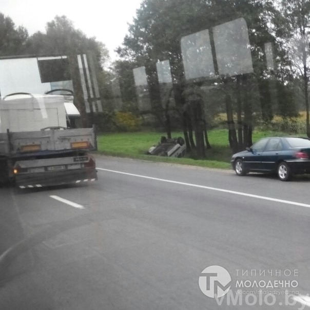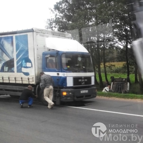 Легковой автомобиль столкнулся с грузовой машиной “Man”. От удара легковушку вынесло в кювет, где она перевернулась.