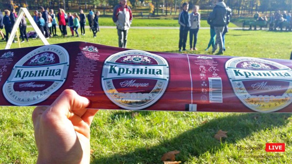 В Молодечно в парке Победы 4 октября состоялся осенний школьный кросс Молодечненского района. На ленте, которая ограждает 500-метровую трассу кросса, была замечена реклама пива.