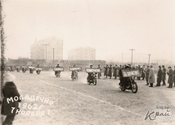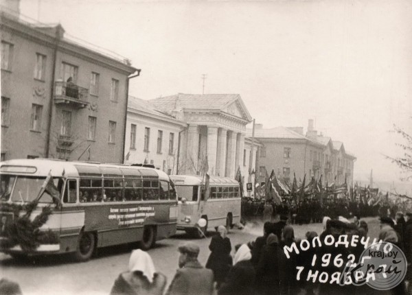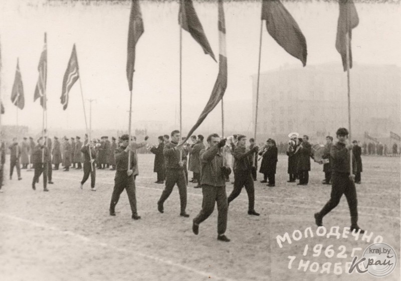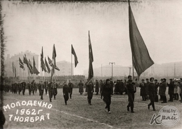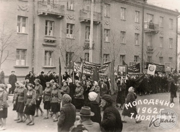 Ретрогород. Праздничная демонстрация в центре Молодечно 7 ноября 1962 года (фото)