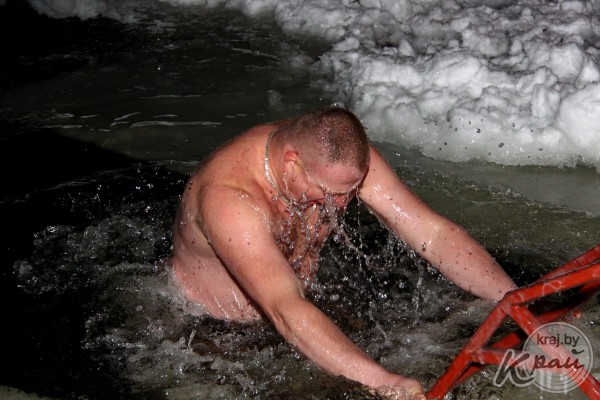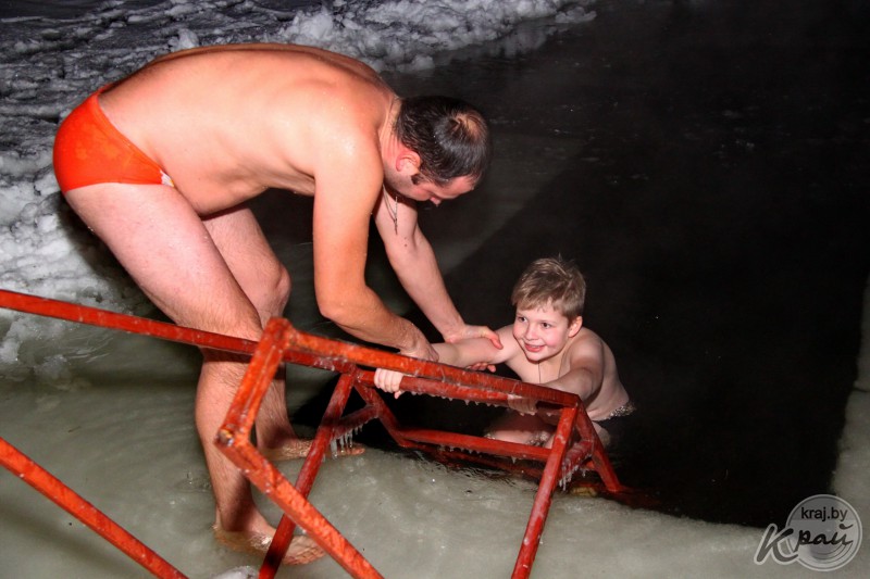Молодечненцы на Крещение окунались в прорубь вместе с детьми. Фото Михаила Маржевского, Край.бай