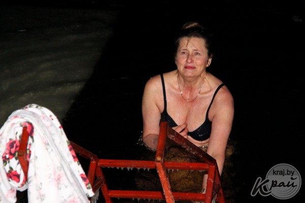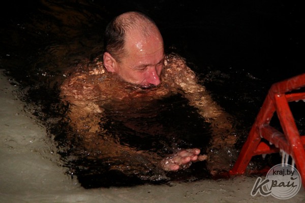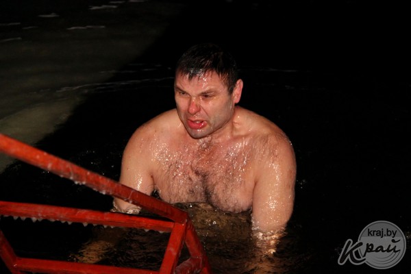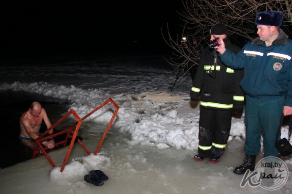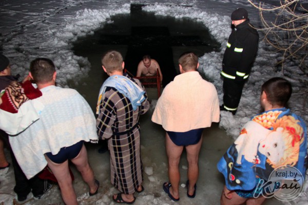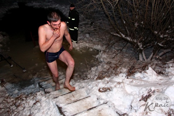 18 января после богослужения в церкви Преображения Господня в д. Носилово настоятель храма отец Геннадий освятил воду в купели и молодечненцы стали окунаться.
