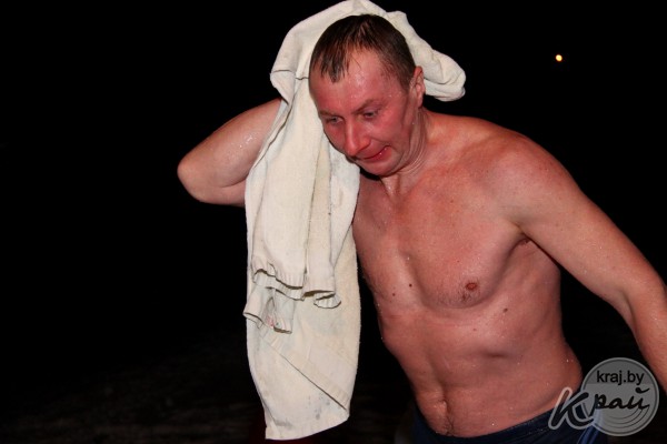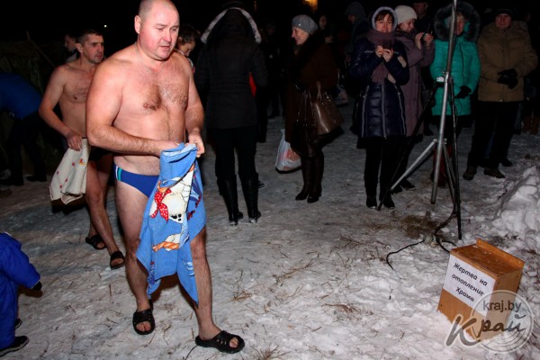 Кто-то из молодечненцев приехал посмотреть за тем, как окунаются другие, а кто-то привез окунуться своих детей.