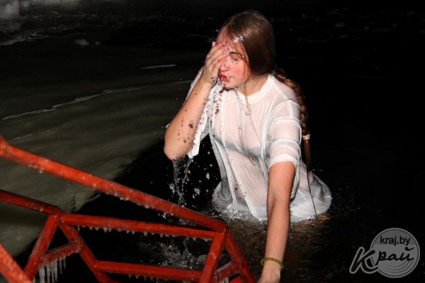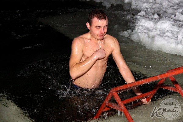 Молодечненцы на Крещение окунались в прорубь вместе с детьми (фото)