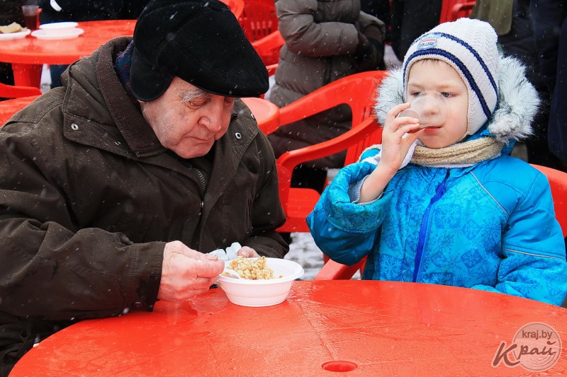 100 килограмм каши за 45 минут съели молодечненцы на Масленицу (фото)