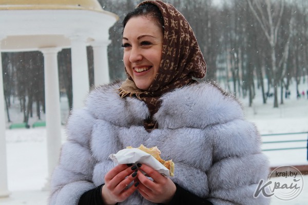В парке было людно – жители и гости города наблюдали за театрализованным представлением, участвовали в интерактивных играх, ели масленичные блины, смаженки, булочки и шашлыки.