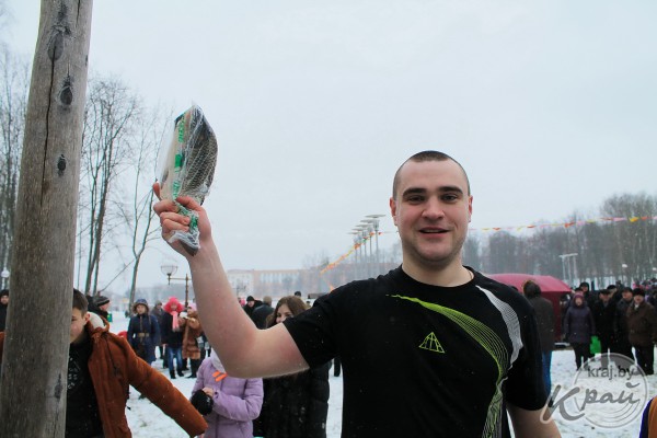 Павел из Молодечно не в первый раз покорял высоту. Он ежегодно приходит на Масленицу и завоевывает призы. В этом году мужчина побывал наверху два раза.