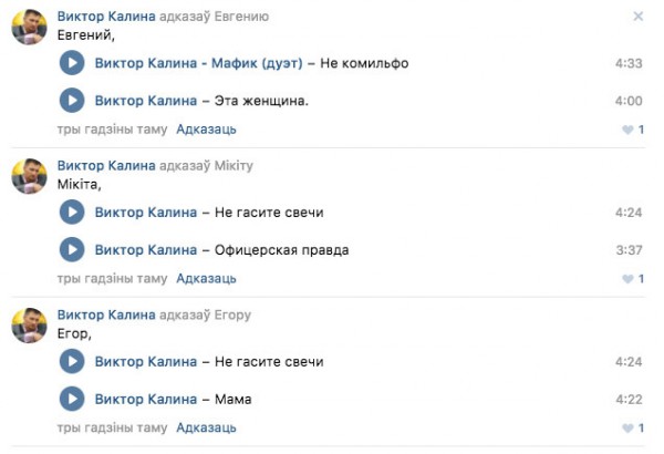 – Уважаемые комментирующие! На каждого артиста есть свой зритель: как на «Арию», «Агату Кристи», «Сябров», Ланскую и т. д., так и на Калину в том числе. Если его творчество вас не устраивает – это не значит, что вы можете писать о нем гадости. Будьте добрее, и хорошего вам настроения! — пытался утихомирить разбушевавшихся жителей администратор группы.