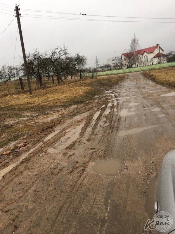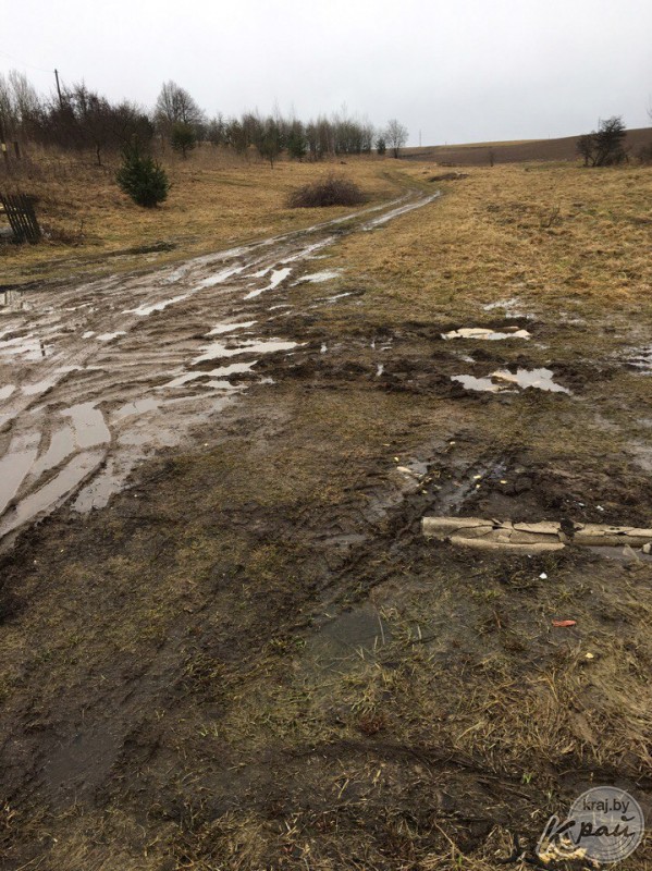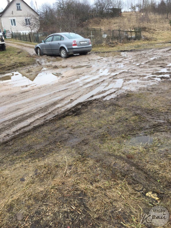 «Дорога вся разбита и превратилась в непроходимое болото. Летом 2016 года мы своими силами укладывали часть дороги, которая к теперешнему моменту размыта паводком. Мы уже обращались в Молодечненский районный исполнительный комитет в письменной форме. На первое письмо нам не ответили, на второе приехала комиссия, посмотрела и уехала, не дав при этом никакого ответа», – писали жители заместителю председателя райисполкома Олегу Хлебовцу 22 марта.