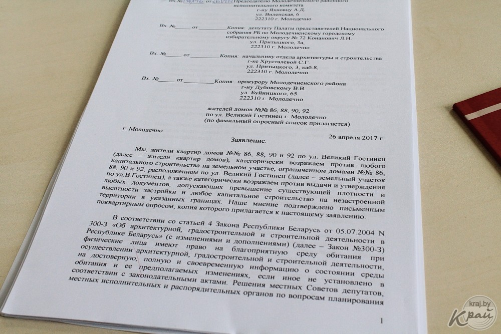 Люди беспокоятся, что многоэтажка, которую планируют возвести посреди их двора, лишит их чистого воздуха, солнечного света и места отдыха для детей и стариков. Молодечненцы не хотят отдавать свой двор и активно собирают подписи против строительства. К моменту публикации против возведения многоэтажки подписались 402 человека.