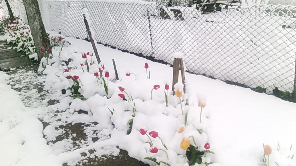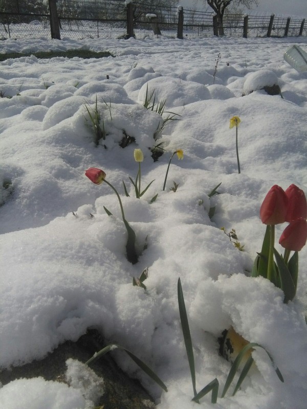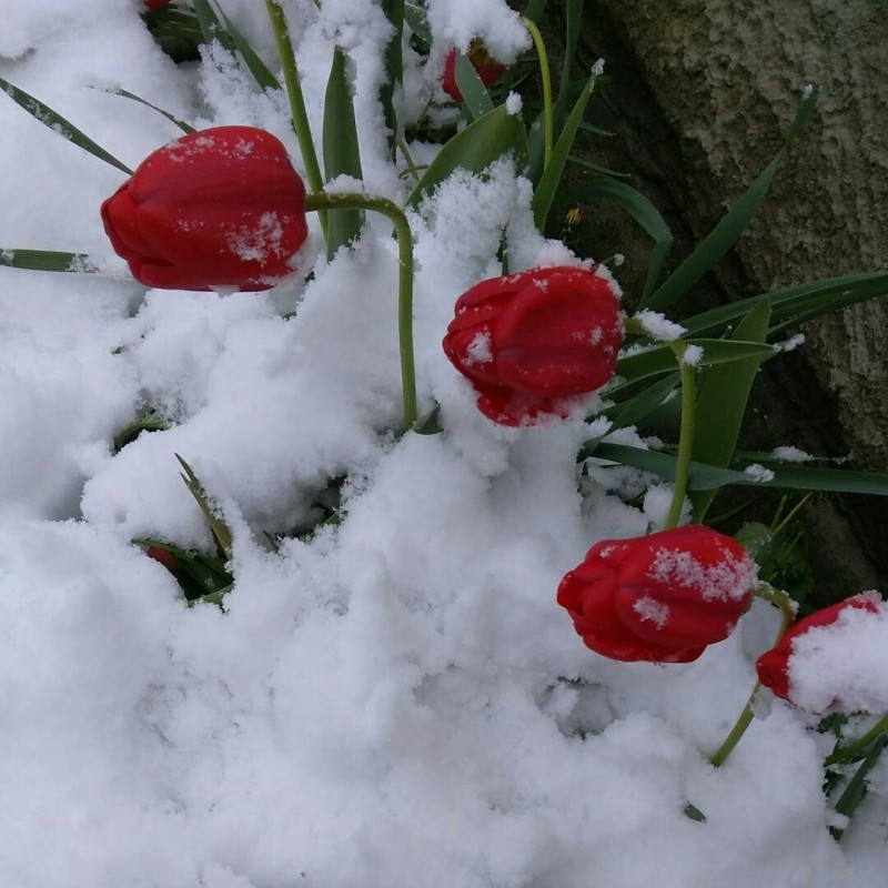 Тюльпаны в снегу и зимние селфи. Как молодечненцы отреагировали на снег 11 мая (фото, видео)