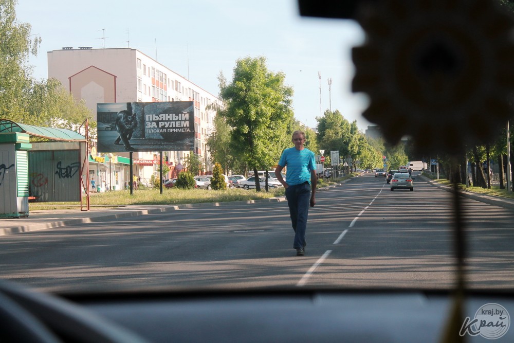 Едем по Волынца, поворачиваем на Космонавтов и видим следующую картину: несмотря на обилие машин в час пик после работы, прямо по разделительной полосе идет пешеход. Хотя до обозначенного пешеходного перехода рукой подать, он, рискуя жизнью, пересекает дорогу, где ему удобно.