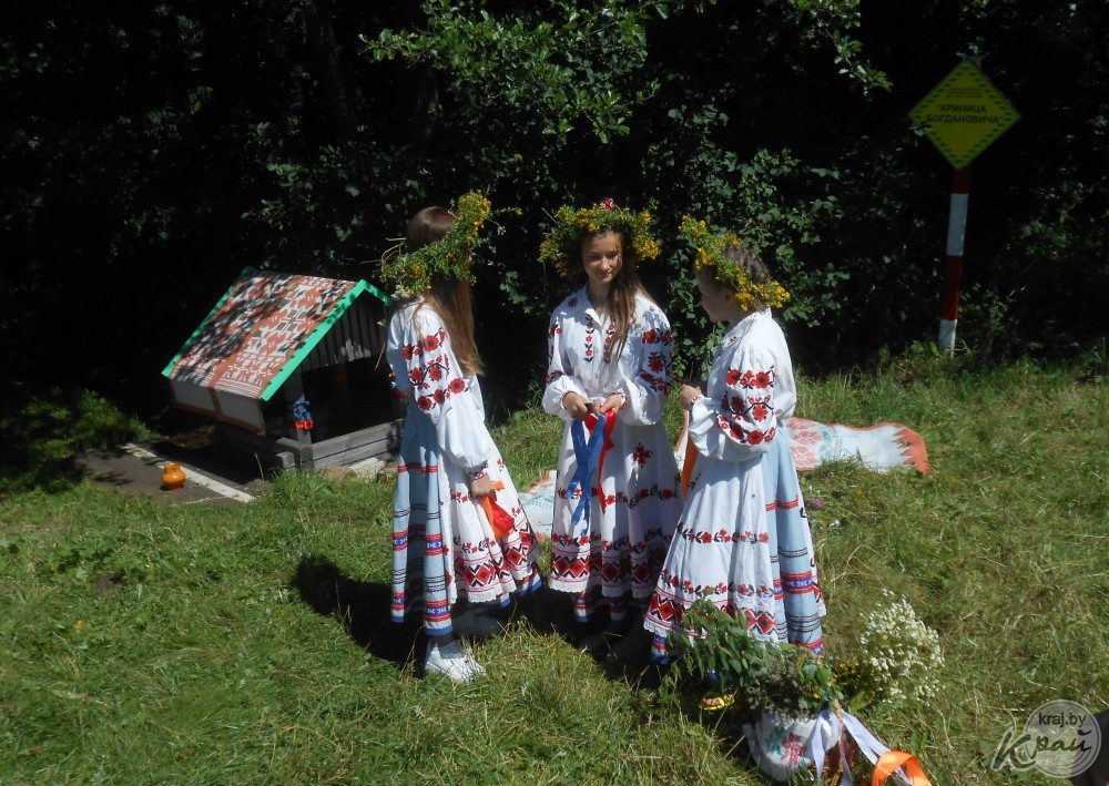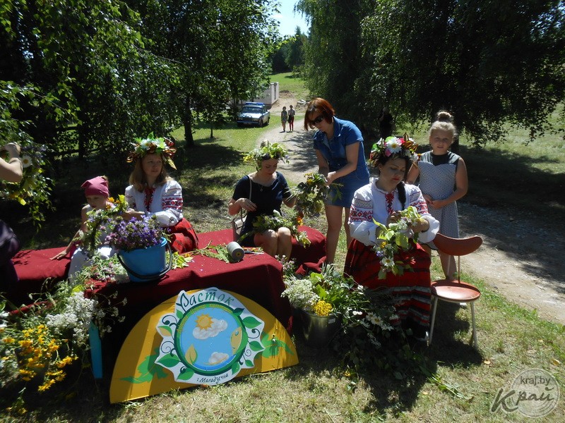 Імпрэза праходзіла ў самім фальварку, а ля крынічкі Максіма Багдановіча гасцей сустракалі траўніцы, якія загадвалі загадкі і зычылі ўсім здароўя на цэлы год.