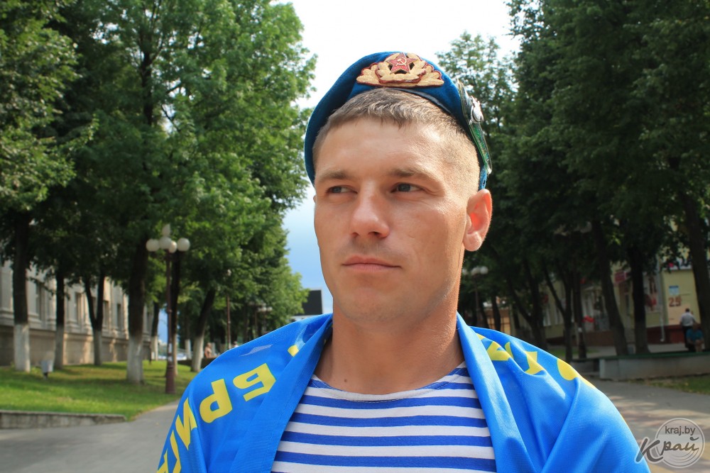 Давать интервью парням в тельняшках нравится, и со словами «расспросите самого старого десантника» они выталкивают из толпы 43-летнего Валерия Стрельчука. 23 года назад он служил в Витебске в 357-м гвардейском десантном полку, но признается, что «помнит все как сейчас».
