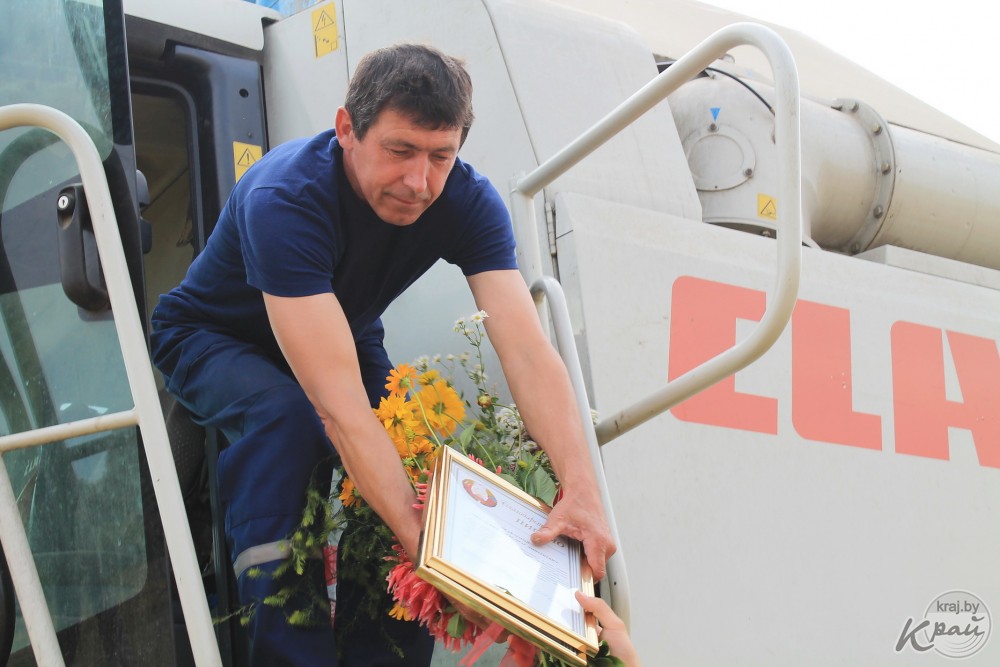 Михаил – первый «тысячник» в Молодечненском районе. Прямо в поле ему вручают благодарственное письмо от Молодечненского райисполкома и премию от Молодечненской районной профсоюзной организации Белорусского профсоюза работников агропромышленного комплекса.