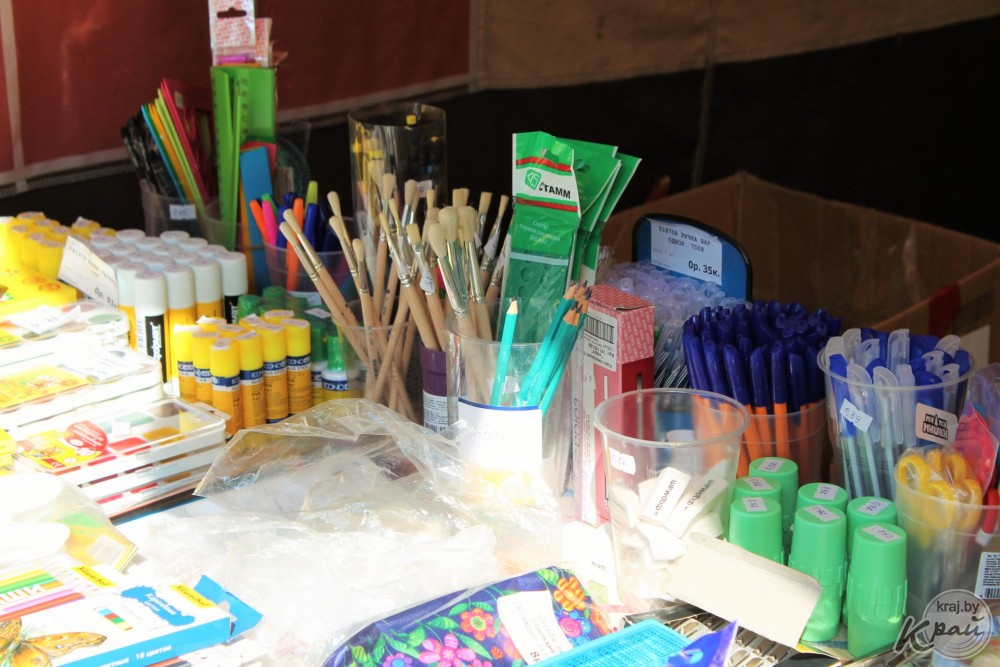 – Мы уже на 100 рублей наторговали, – радостно делится продавец палатки Вилейского райпо. – Разбирали у нас хорошо тетради, пеналы, акварель. А обувь не берут. Говорят, уже купили.