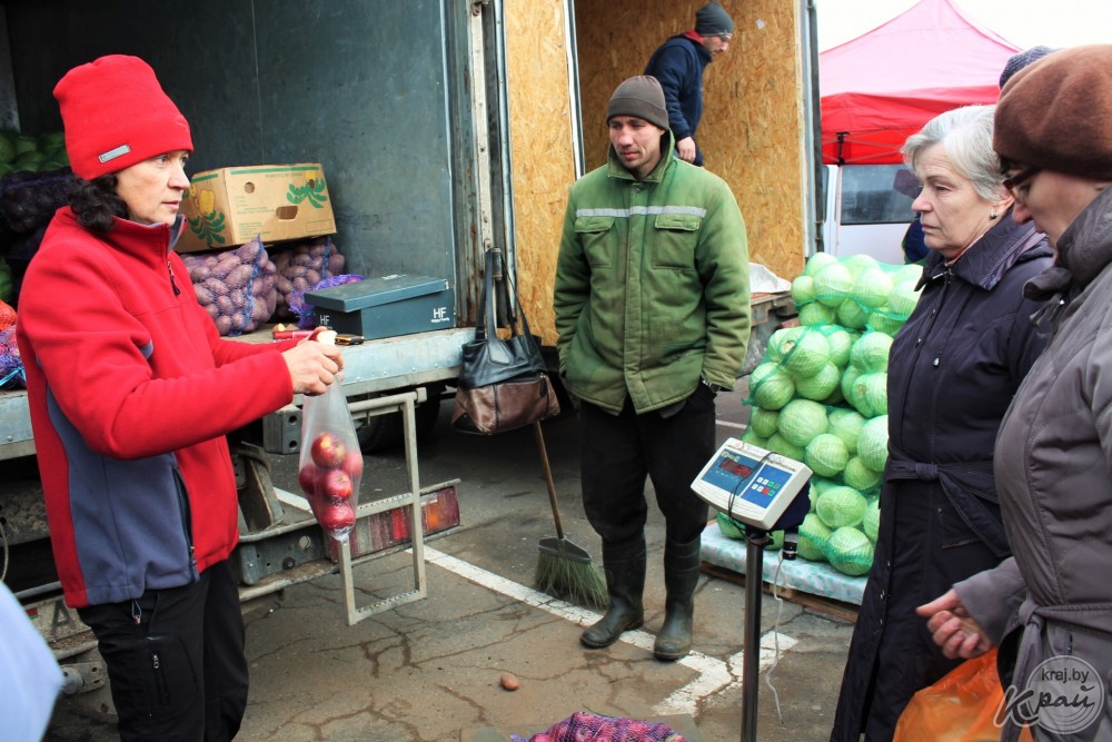 Представитель фермерства Светлана Апанасевич рассказывает: «Капуста наша сегодня не в тренде: конкурентов много, зато картошку и яблоки берут хорошо».