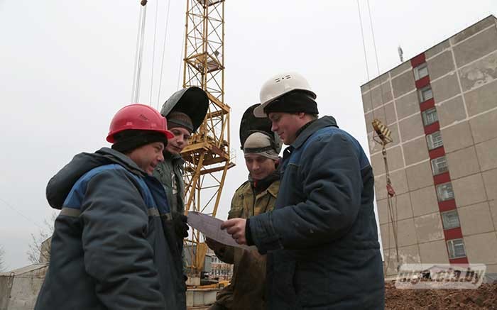 – Этот объект первый в Молодечно за последние годы, который возводят борисовчане, – говорит начальник участка Юрий Мосин. – Живут работники в гостинице. Условиями быта и работы они довольны. Большинство строительных материалов для дома также производится в Борисове. Планируется, что для выполнения некоторых работ будут привлекаться субподрядные организации.