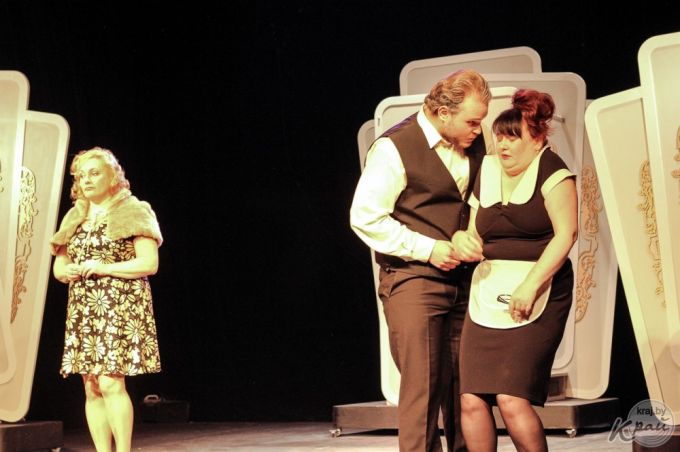 5 декабря в Минском областном драматическом театре в Молодечно состоялась премьера комедии «Ну, вы даете!». Фото Егора Такаревича