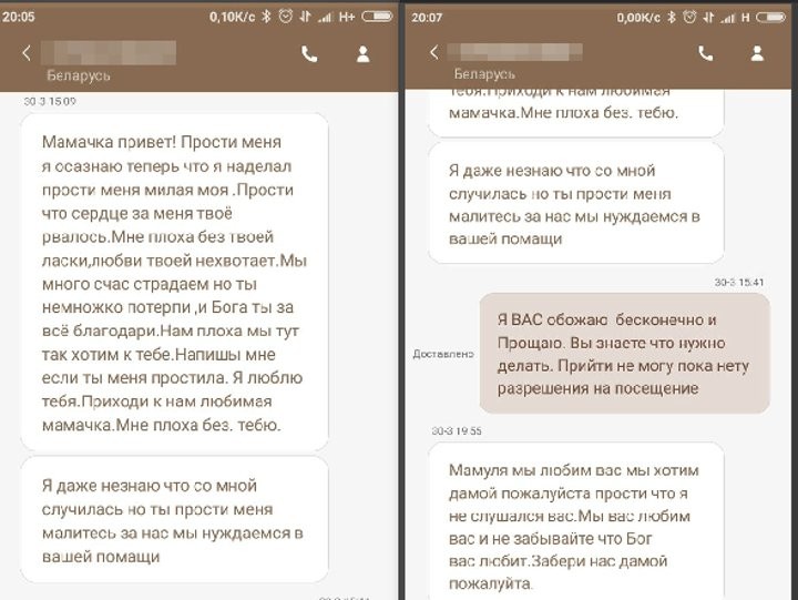 Сообщения, которые 30 марта Елене прислали дети. Скриншот сообщений с телефона Елены