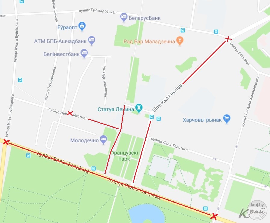 – участок улицы Виленской (от ресторана «Европа» до пересечения с Великим Гостинцем);