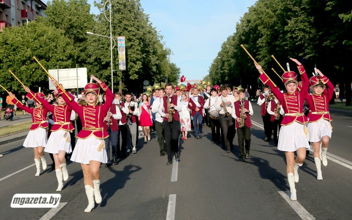 Выпускники вместе с родителями и педагогами прошли двумя колоннами от гимназии №6 и музыкального колледжа имени М.-К. Огинского